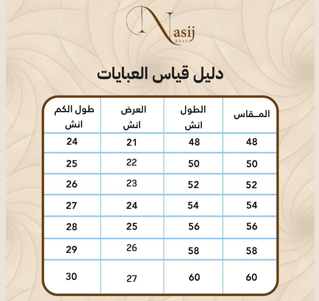 - تجهيز العبايات بعناية خلال 3 – 6 أيام عمل.